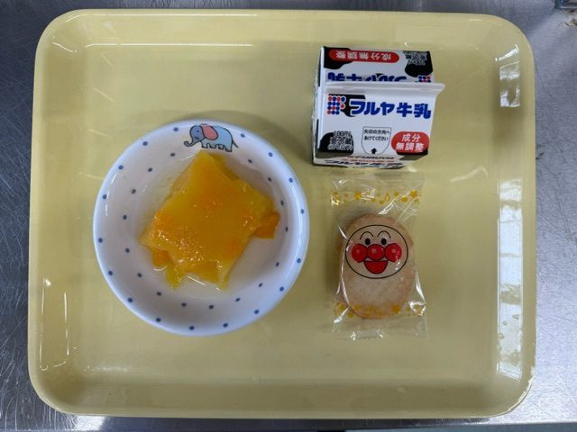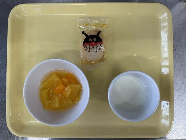 ↓あおば保育園で提供しているおやつと給食です。